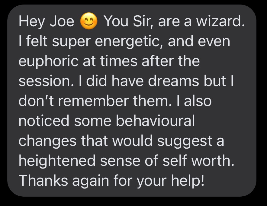 The transformation was nothing short of life-changing. I not only healed from the depression (and stopped taking Zoloft) but also gained tools to nurture my inner harmony and resilience. I cannot recommend Joseph highly enough to anyone looking to heal deeply and reclaim their authentic self."
