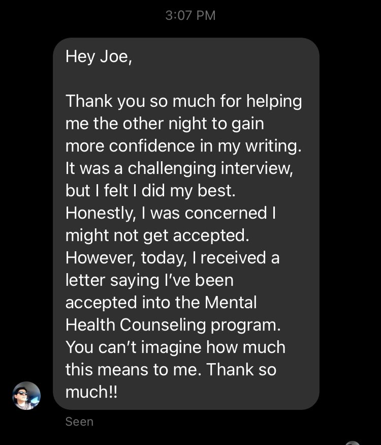 Joseph gently guided me to reconnect with my dissociated ego state. His warmth, professionalism, and deep expertise created a space where I felt safe to explore the part of myself I couldn’t find. With his guidance, I was able to re associate my dissociated part.